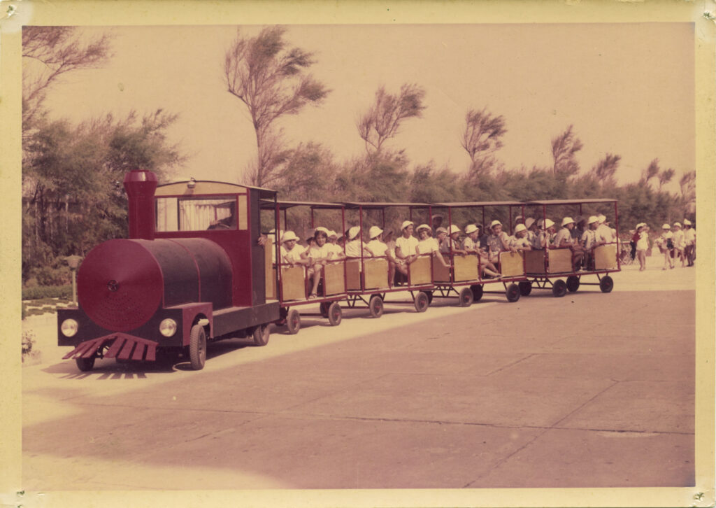 Boys and girls on the train of the Villa Marina Colony. Photograph by Cesare Pandolfi, 1970s (Macula archive)