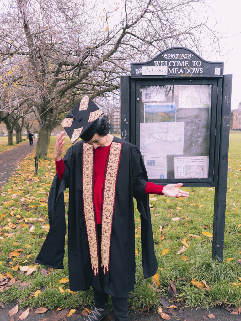 Farah Saleh, trasformazione decoloniale dei Meadows di Edimburgo in opposizione ad Arthur James Balfour e alla Dichiarazione del 1917 sulla Palestina, 2023 (fotografia di Lucas Chih Peng Kao, archivio Nicola Perugini)