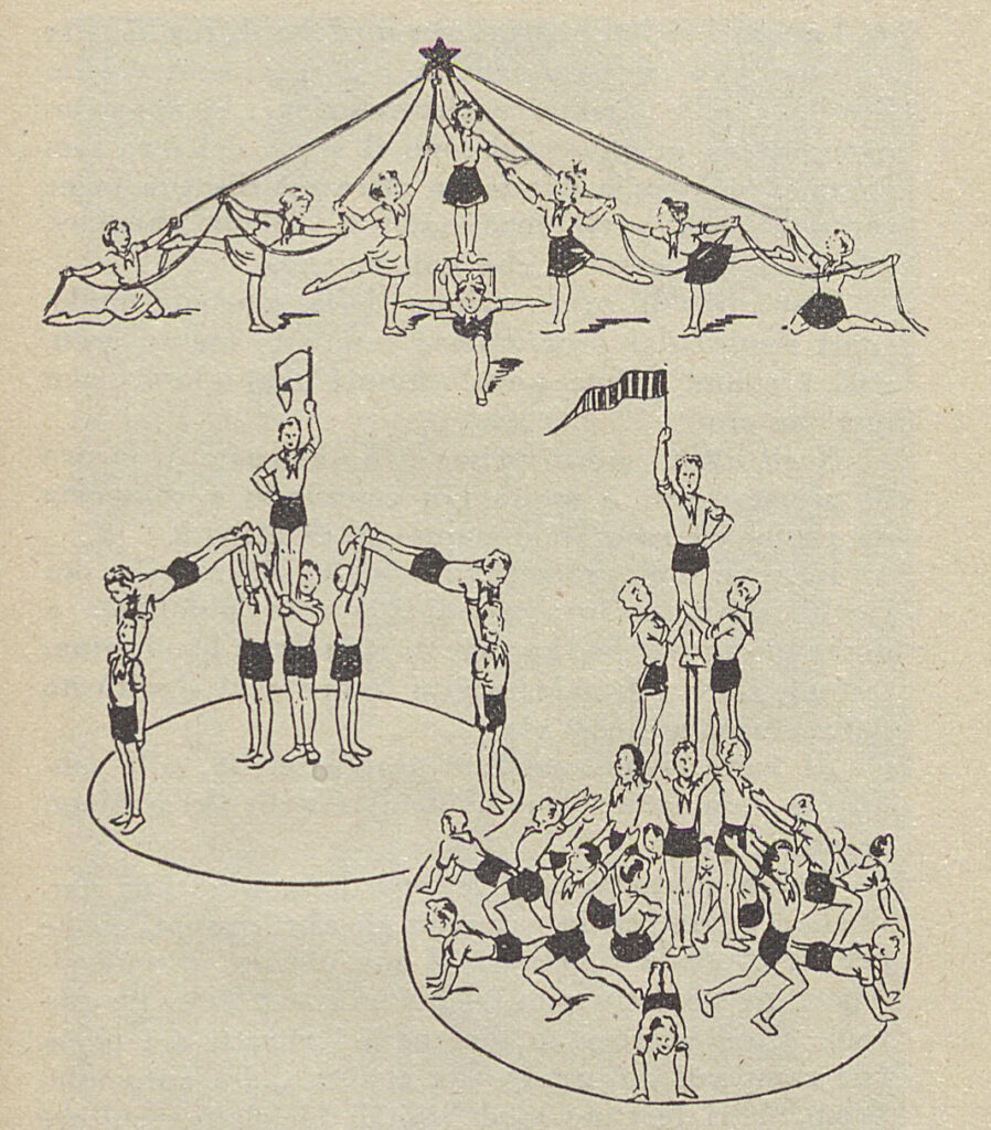 Exercises for children in the democratic colony, in The Happy Colonia. Manual for Leaders of Marine and Mountain Colonies, National Committee for Popular Solidarity, La stampa moderna, Rome, 1951