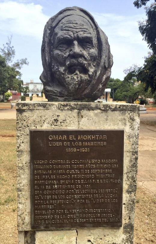 Statua dell’eroe anticoloniale libico Omar al-Mukhtar المُختار عُمر, Africa Heroes Park, Havana, Cuba