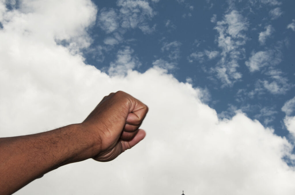 Un’immagine delle campagne anti-apartheid in Sud Africa ci traghetta verso l’idea di società multirazziale del nuovo millennio, in cui cittadini neri e bianchi commemorano Nelson Mandela, e verso nervi ancora scoperti come la questione palestinese. Nel 1997, Mandela disse della lotta palestinese contro l’apartheid: “Sappiamo bene che la nostra libertà rimarrà incompleta senza la libertà dei palestinesi”.