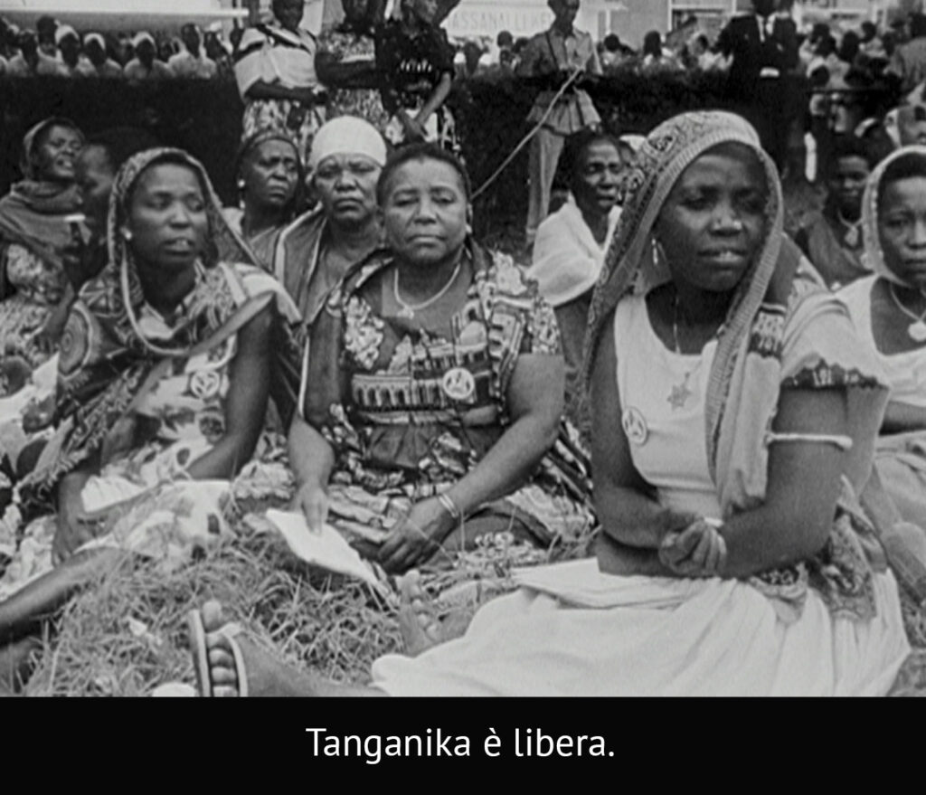 Un’assolata composizione dove l’immagine centrale dei bambini festanti in mare (figli di coloni italiani in Libia), si intreccia con la fotografia di W. E. B. Du Bois, intellettuale statunitense panafricanista che scrisse dell’invasione italiana dell’Etiopia come “ultimo grande sforzo dell’Europa bianca di assoggettare gli uomini neri”. Giorgio Marincola, il partigiano italiano nero da bambino, a cavallo, ci accompagna verso due fotogrammi de La rabbia di Pier Paolo Pasolini